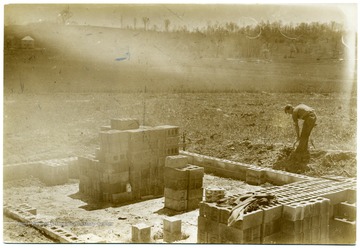 - Laying Cinderblocks for a Homestead Foundation at Arthurdale, W. Va.