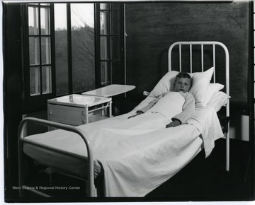 Child in Hospital Bed at Eastmont Sanitarium, Monongalia County, W. Va.