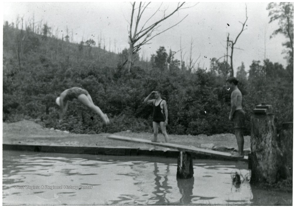 - Diving., Coal Mines and Mining--Scott's Run--Trubee Collection., Swimmers.