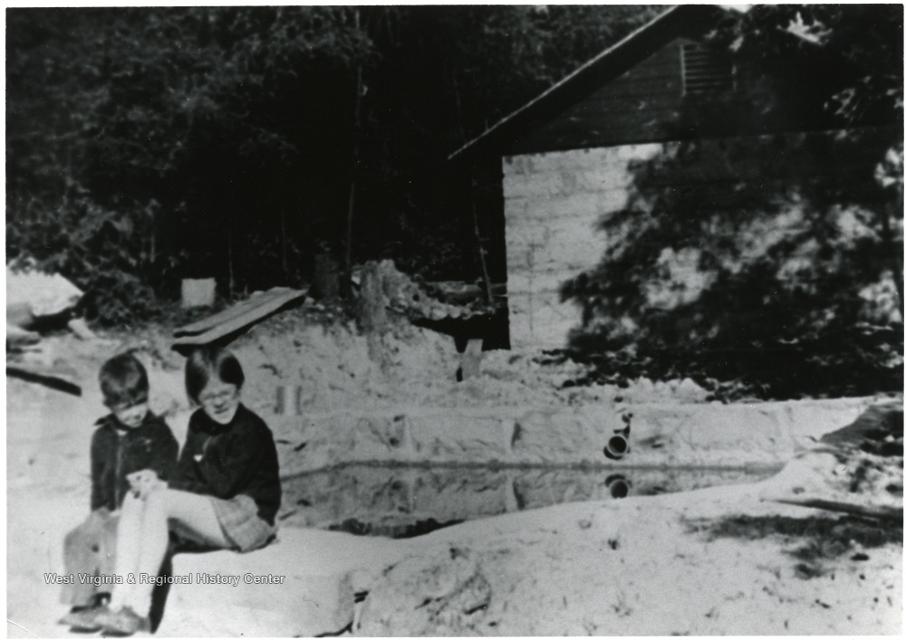 - Children Sitting next to a Pool of Water at Scott's Run, Monongalia County, W. Va.