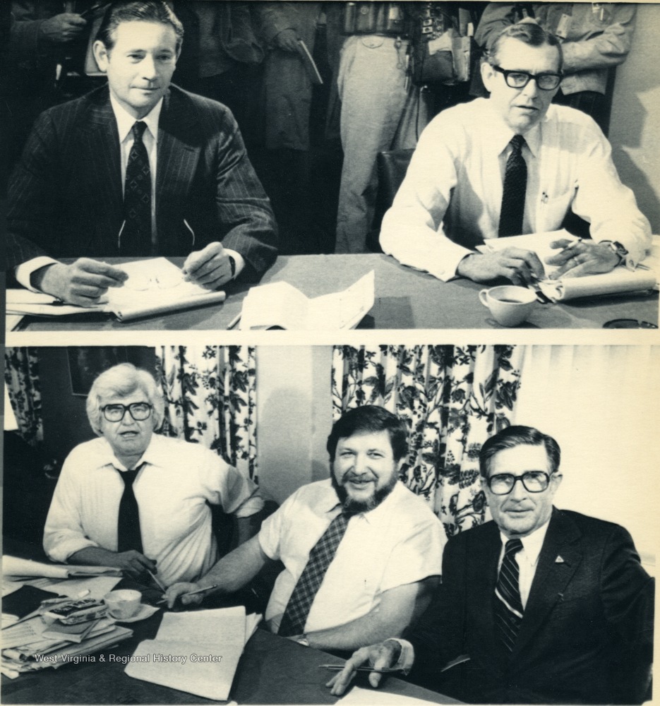 - 'Negotiating teams for the soft coal industry, top, and the United Mine Workers resume talks Monday in Washington. At top are Peter Palumbo, left, and B.R. 'Bobby' Brown representing the soft coal industry. At bottom from left are Walter Suba, Sam Church, president United Mine Workers, and Harrison Combs, general counsel for the UMW. The negotiators are working against a midnight deadline in the search for a tentative contract settlement in hopes of averting a nationwide strike. (AP Laserphoto)(see AP AAA wire story) (tm21226stf/daugherty) 1981 slug: Coal Talks.'