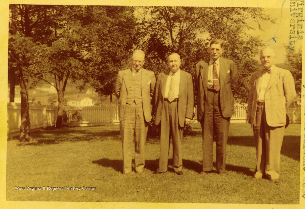 - Dr. C.E. Lawall, (far right), Past President of WVU, is pictured with Robert H. Morris, H.P. Musser, and Elliott Vawter.