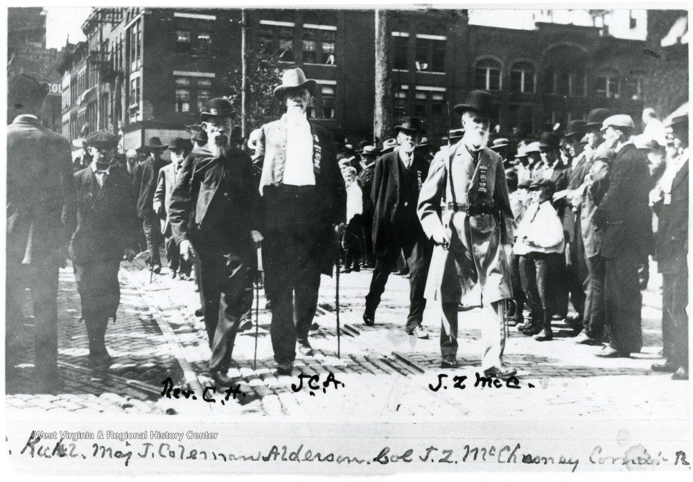 - Veterans--Confederate States of America., Cities--Alderson--Portraits--Group., Parades--West Virginia--Charleston.