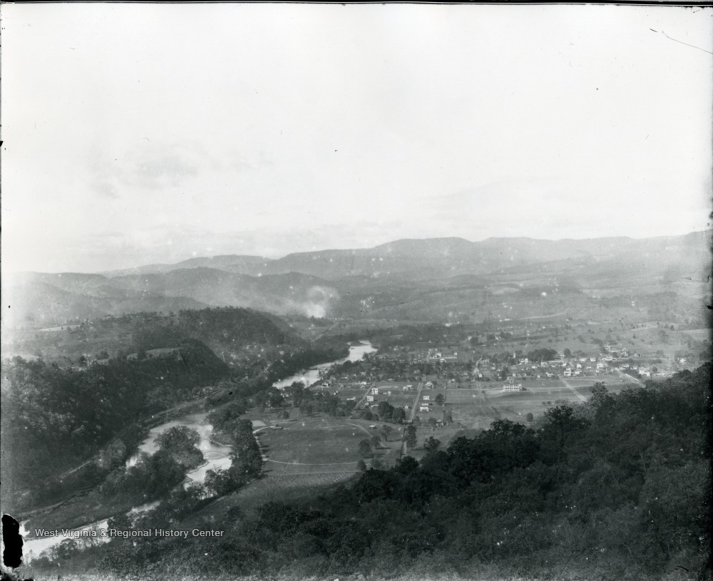 - Overview of Town of Alderson looking S.W. from Indian View. Mountains surrounding town of Alderson.