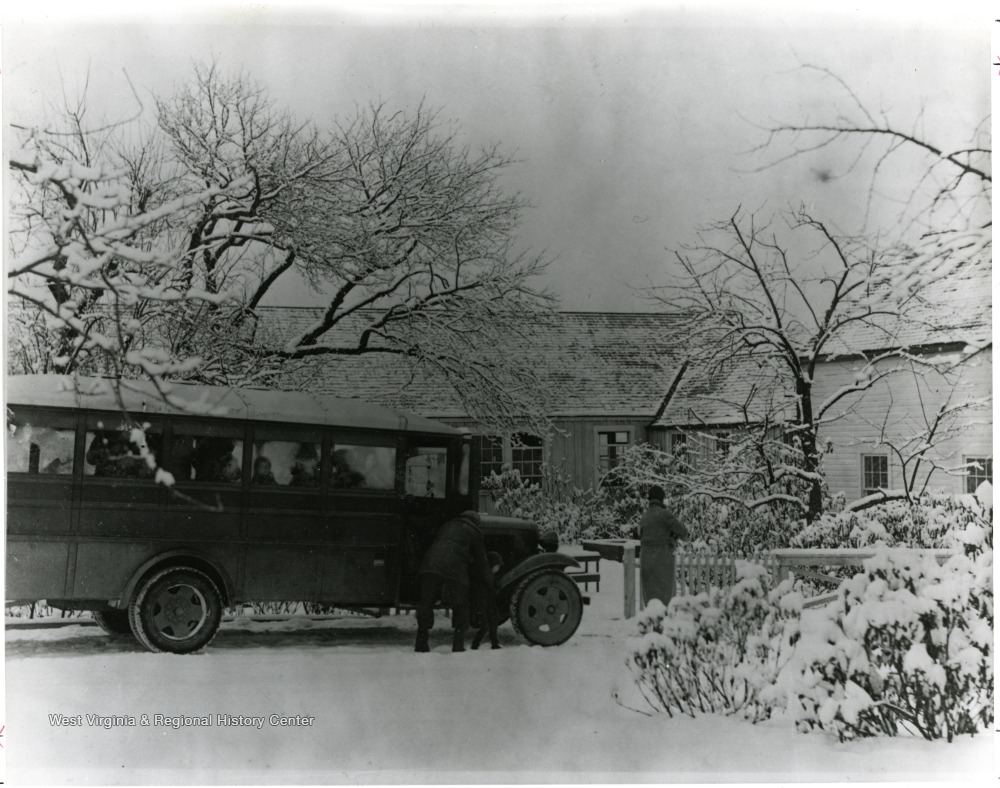 School Bus Picking Up Children on a Snowy Day in Arthurdale, W. Va.