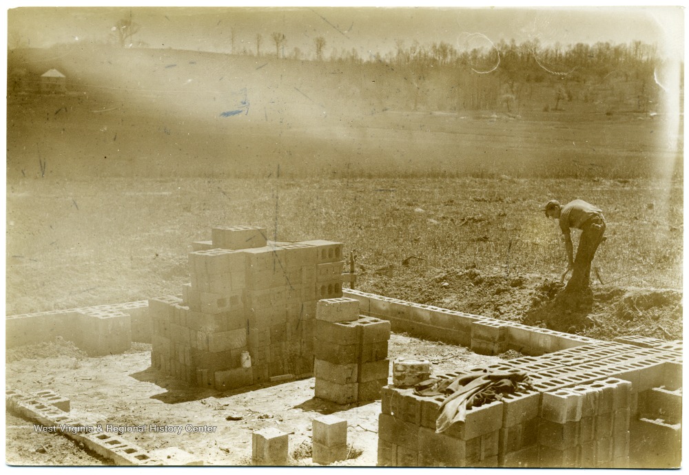 Laying Cinderblocks for a Homestead Foundation at Arthurdale, W. Va.