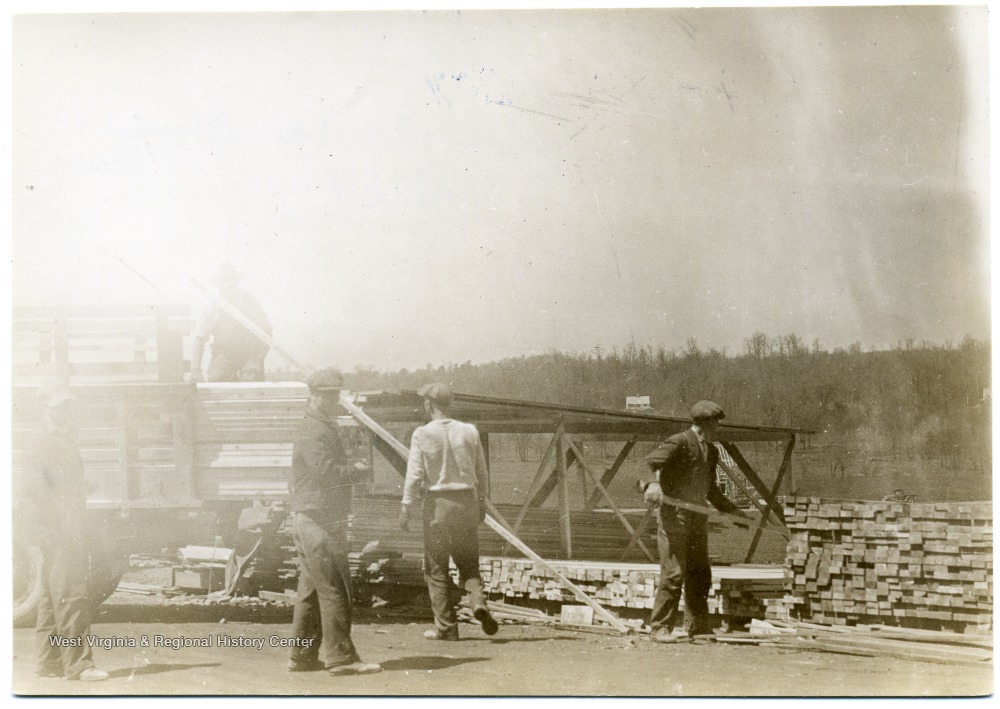 Unloading Lumber From a Truck at Arthurdale, W. Va.