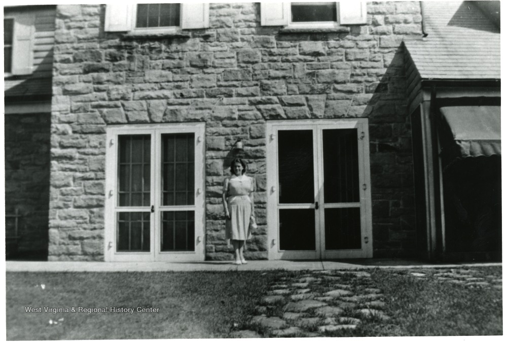 Unidentified Woman Standing in Front of a Building at Arthurdale, W. Va.