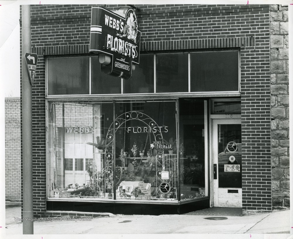- View of the store front of Webb's Florists and Greenhouses in Beckley, West Virginia.