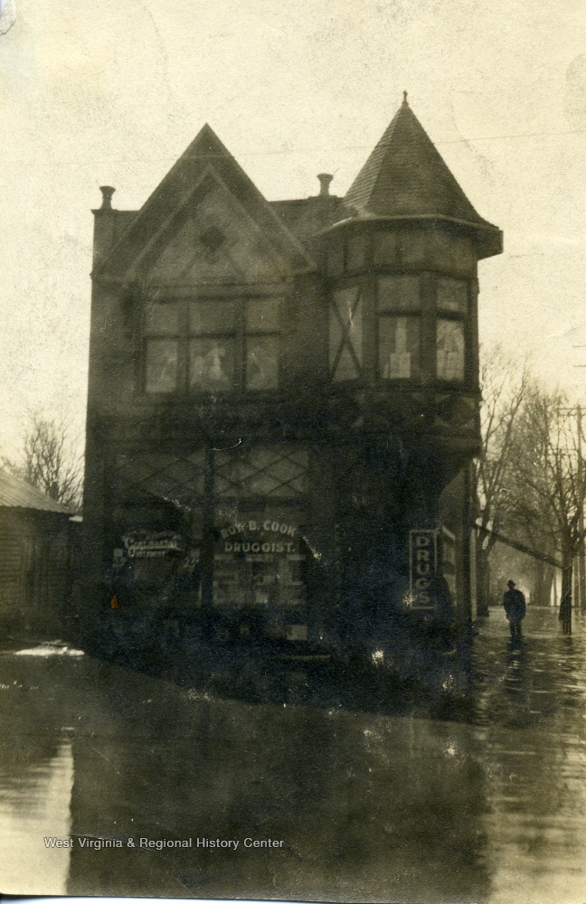 - A man stands near the two story Victorian style Roy Bird Cook Drug Store in Charleston, West Virginia.