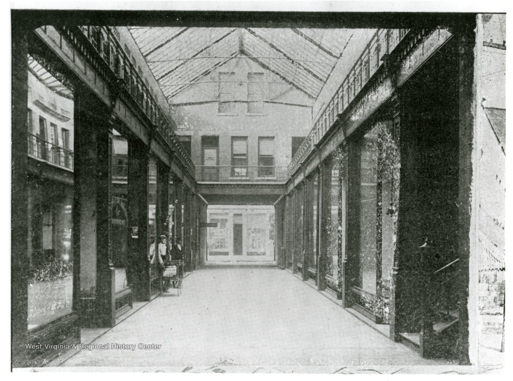 - View of the covered walkway of the Charleston Arcade located in Charleston, West Virginia.