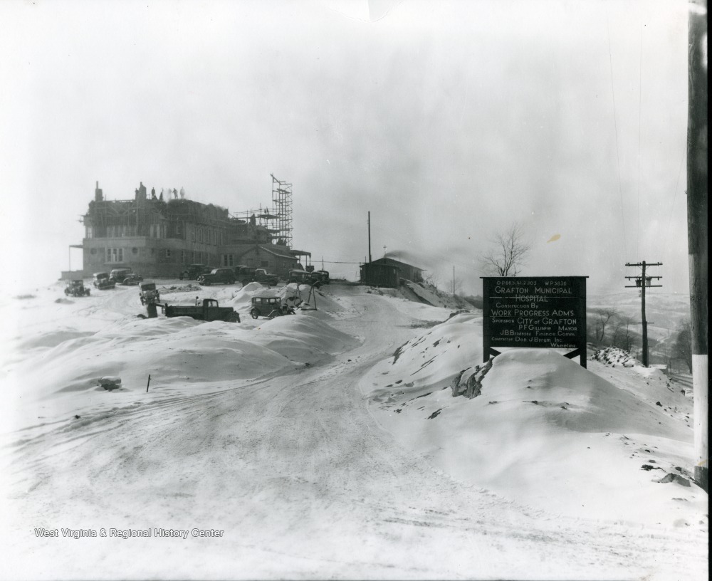 - Work being done by the Work Progress Administration on the Grafton Municipal Hospital. Sponsor- City of Grafton. P. F. Gillispie, Mayor. J. B. Bradford, Finance Comm. Contractor, Don J. Byrum Inc., Wheeling.