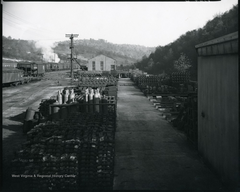 - Supplies stacked up and arranged in rows in Grafton, W. Va.