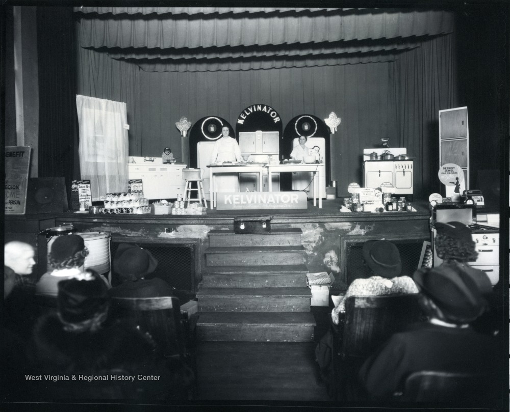 - Two sales ladies are demonstrating Kelvinator refrigerator products in Grafton, West Virginia.