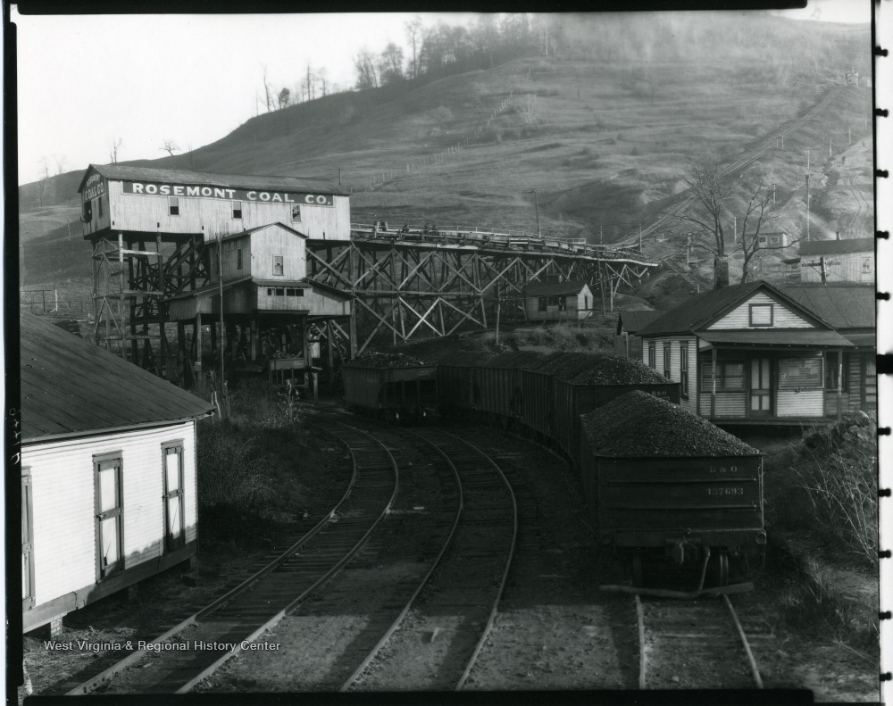 - Several filled coal cars at the Rosemont Coal Company tipple near Flemington, West Virginia.