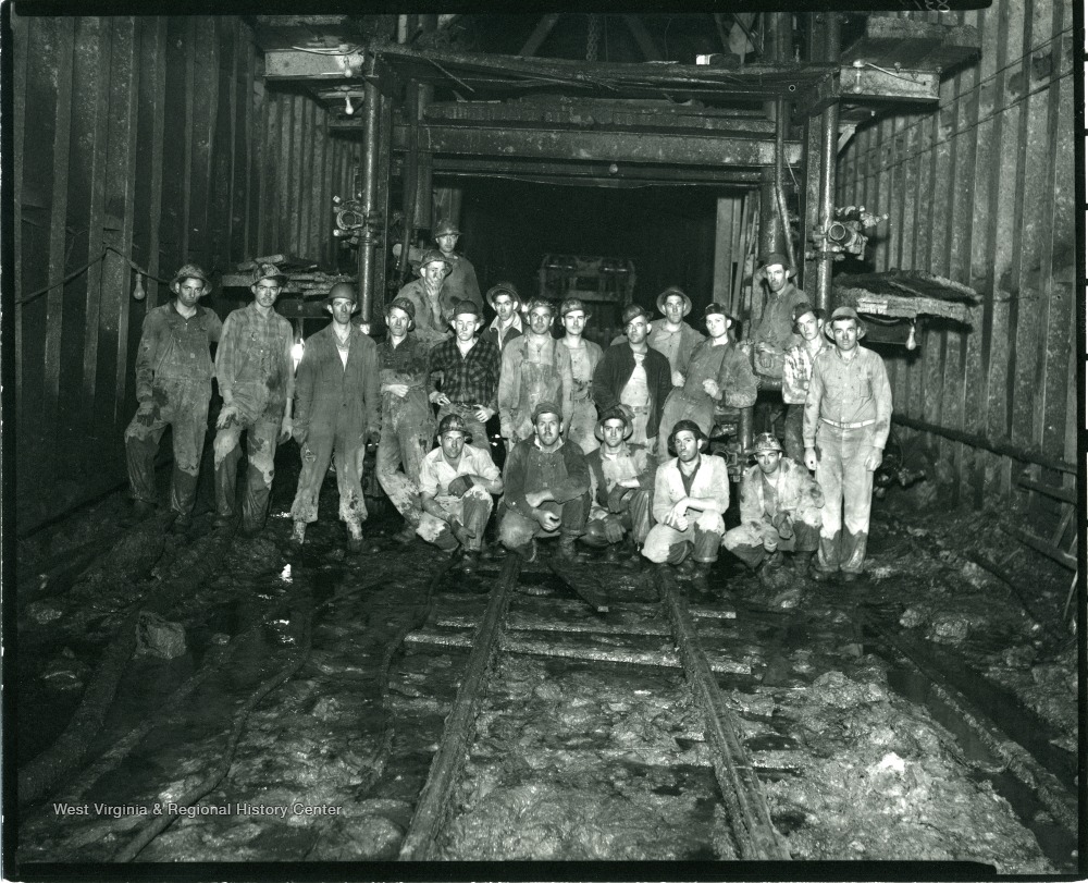- Coal Miners Pose on the Tracks of a Mine in Grafton, W. Va.