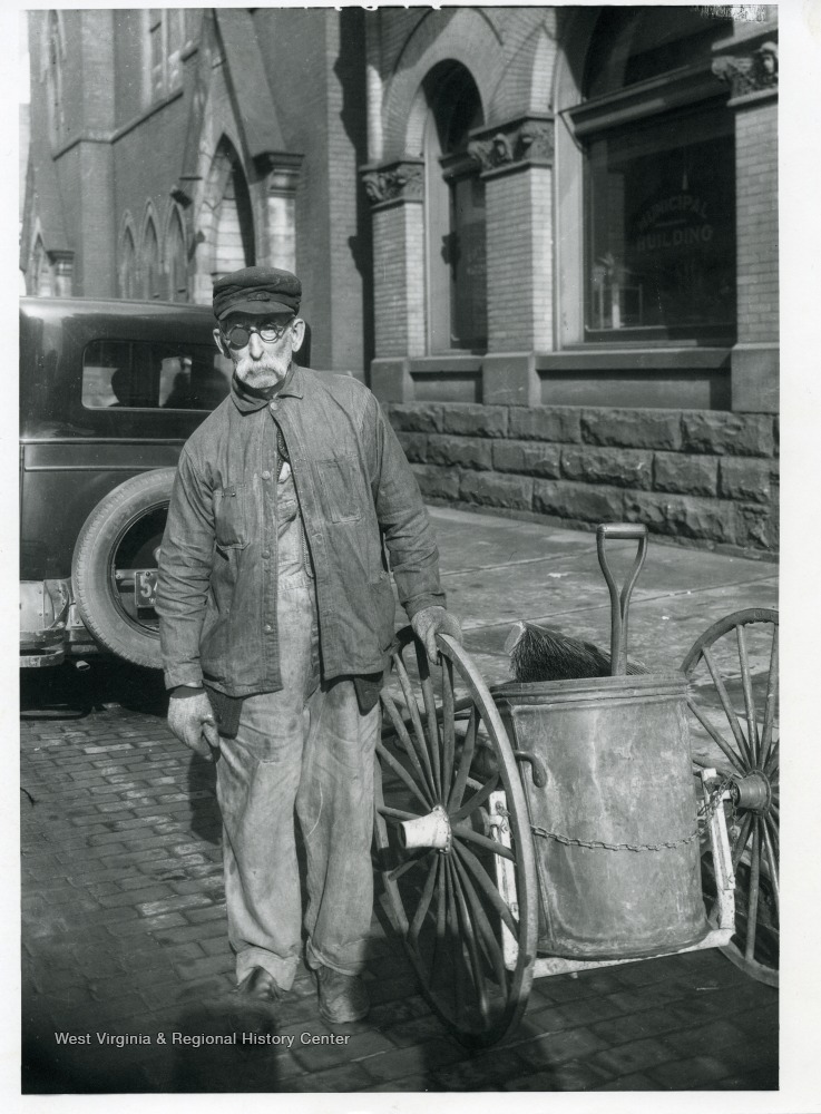 - A street cleaner and his equipment in Grafton, West Virginia.