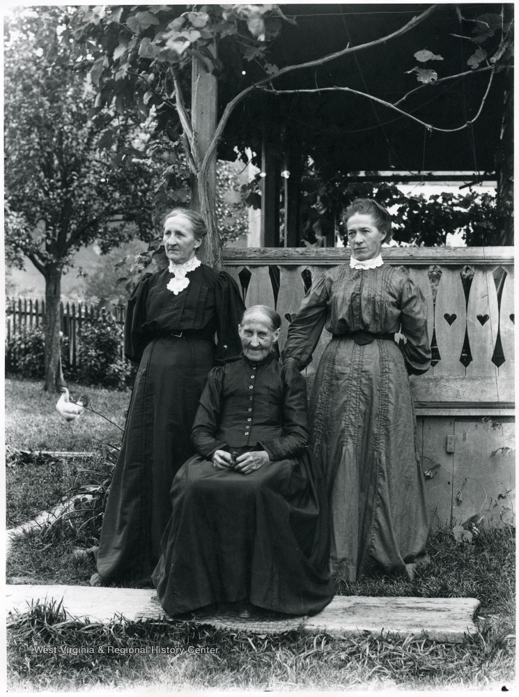 - Mrs. Aegerter standing on the left with Elizabeth Berger Dubach, seated in the center, who is mother of Elise Dubach Berky (Burki), standing on the right.