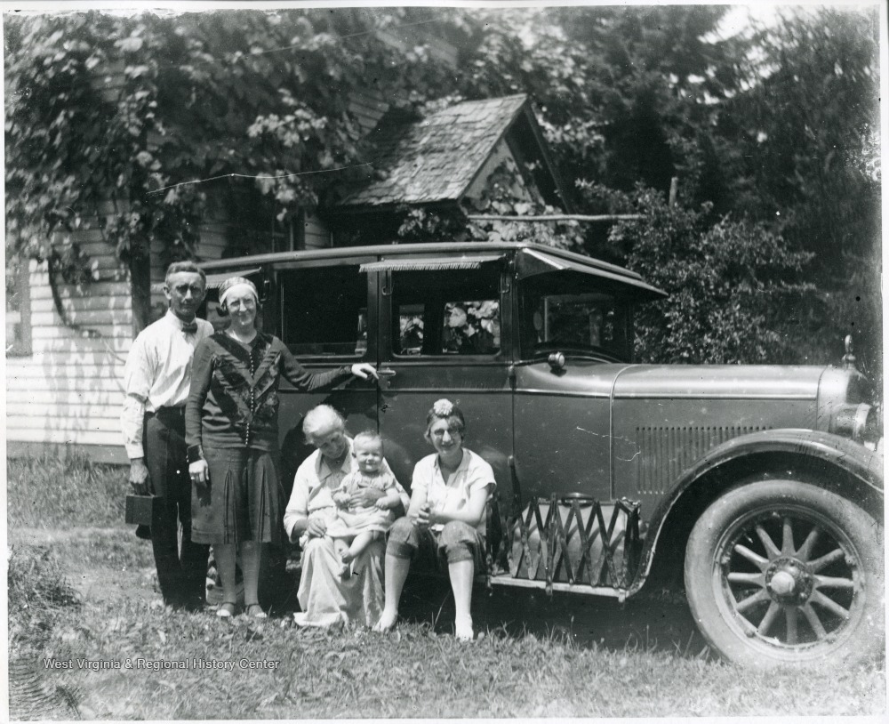 - Holtkamp and Aegerter Family members in front of a car, Helvetia, W. Va.