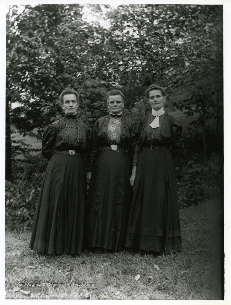 - Right to left: Lisetta Stadler Kuenzler, Emma Stadler Burky, and Ida Stadler Betler; taken on the Stadler farm by Walter Aegerter.