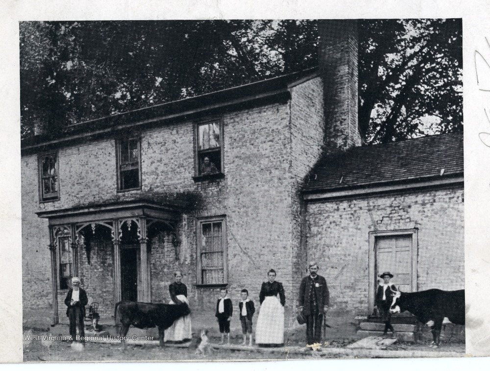 - Two women and two gentlemen are standing in front of a farmhouse along with three children and two cattle in Huntington, West Virginia.