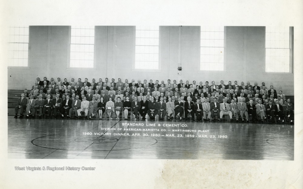 - Group portrait of Standard Lime and Cement Company, Division of American Marietta Company, Martinsburg Plant workers attending the 1960 Victory Dinner on April 30, 1960.