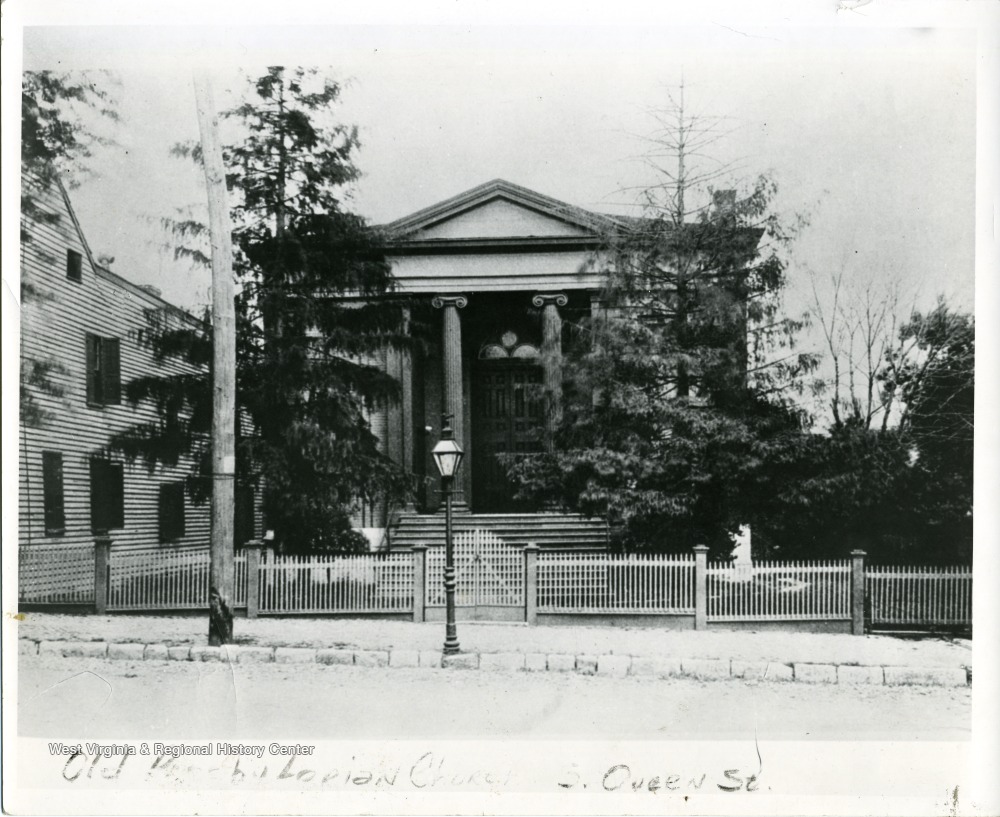 - The front of the Old Presbyterian Church on S. Queen Street in Martinsburg, West Virginia.