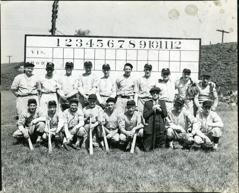 - Group photo of a baseball team in front of a scoreboard, Martinsburg, W. Va.