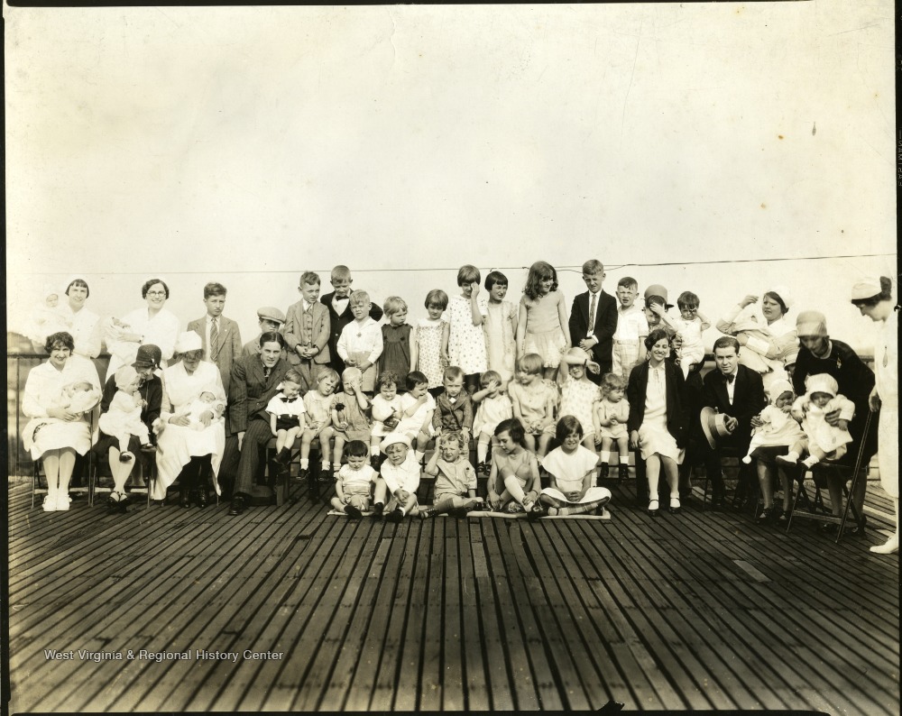- Group portrait of men, women, and children at a roof top picnic at the city hospital, Martinsburg, W. Va.