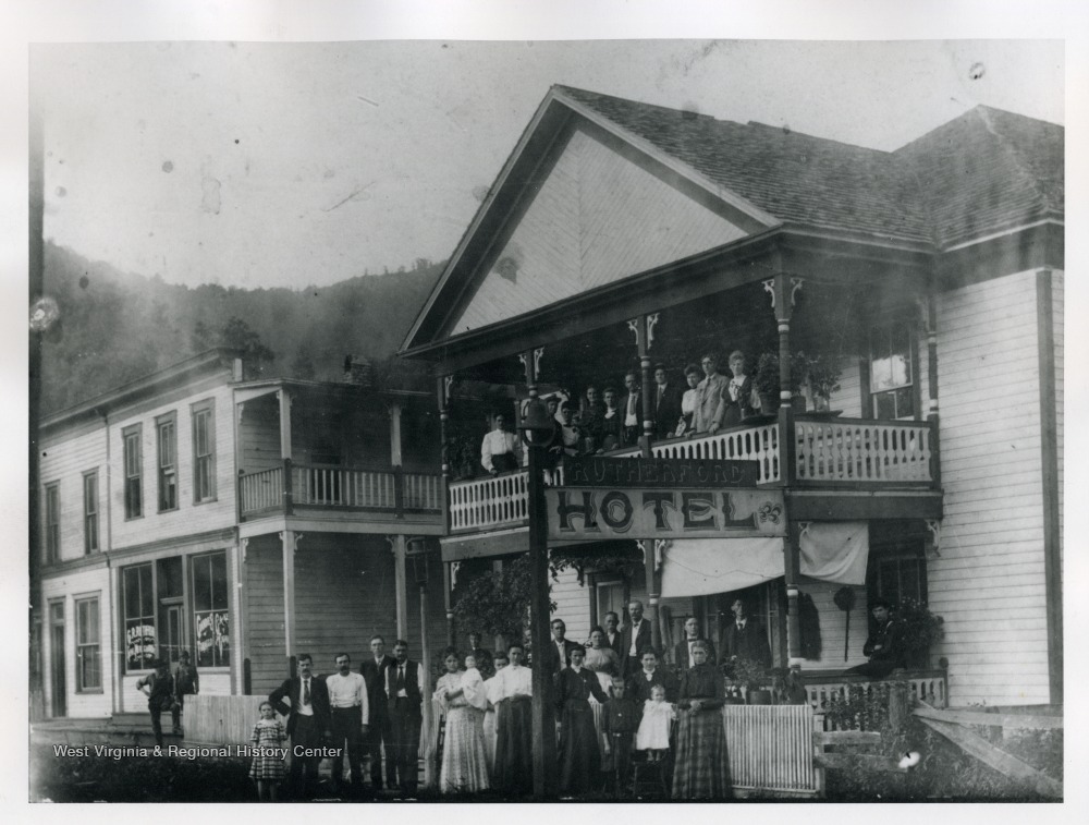 - Townspeople are standing on the balcony and porch of the Rutherford Hotel on 21st Street, Nitro, West Virginia.