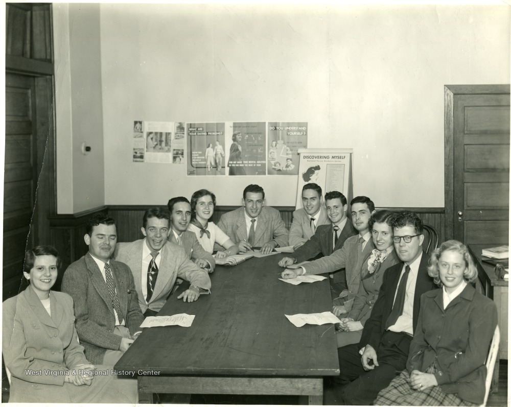 - Group of unidentified men and women sitting around a table for a presentation entitled 'Discovering Myself,' Martinsburg, W. Va.