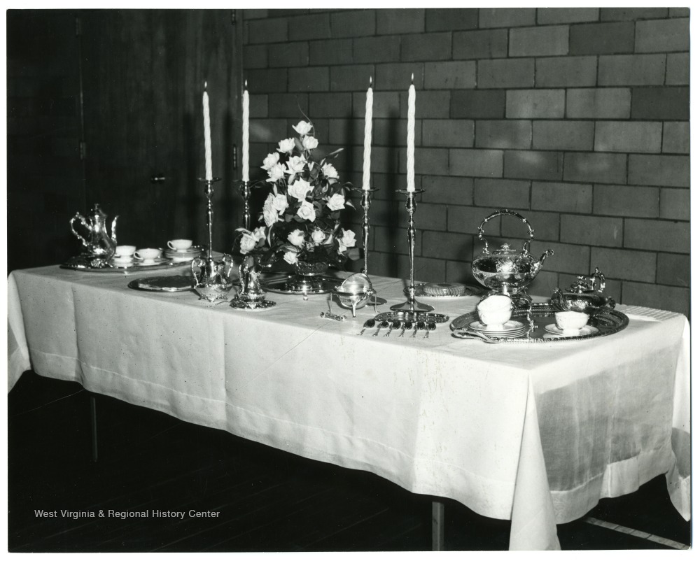 Table with Two Antique Tea Sets, Morgantown, W. Va.