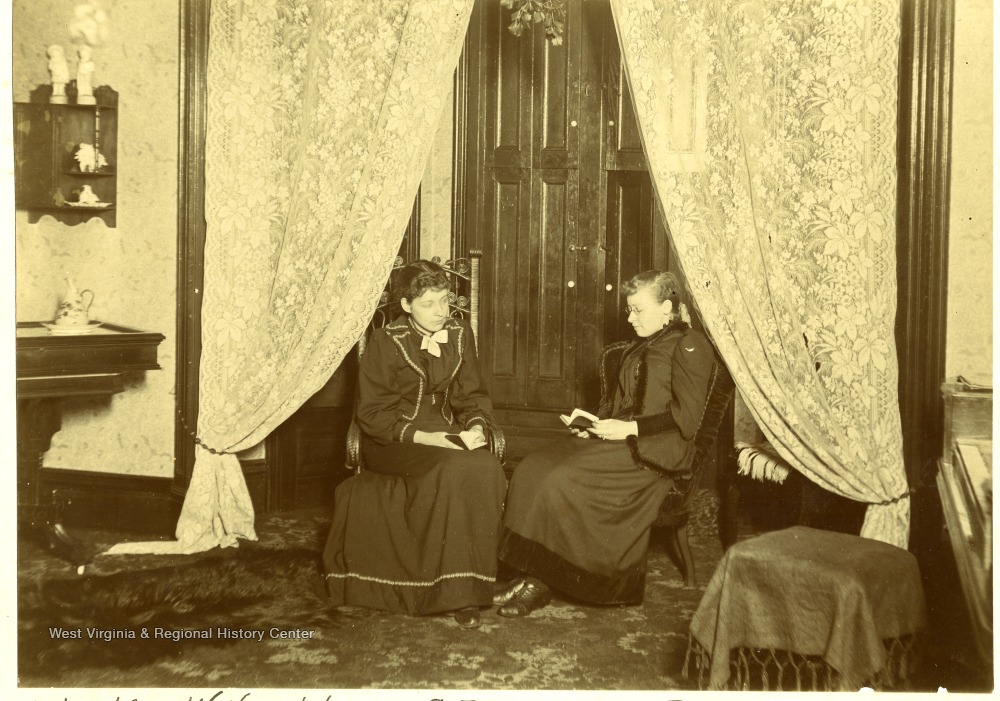 - Laura and Jessie Burt read in the sitting room in their home on Island and South Broadway Streets in Wheeling, W. Va.