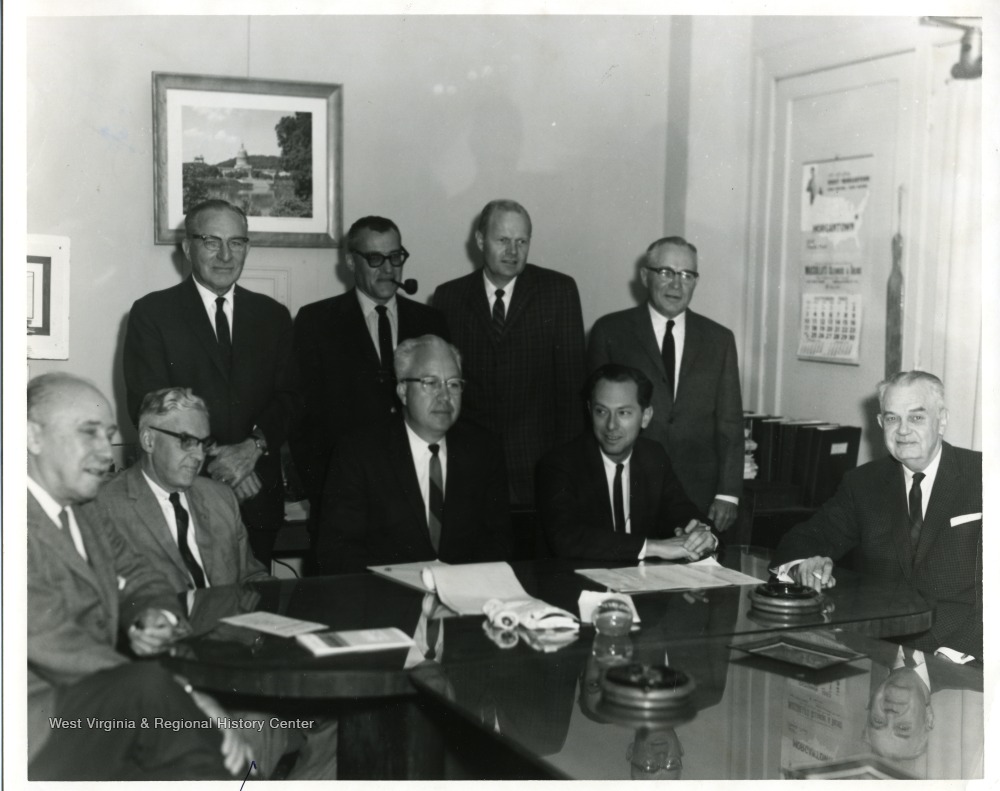 - Group portrait of Richard Hamstead, Joel Hanna, Bill Leyhe, Bob Burchsul, and Mayor Arthur W. Buehler and others in photograph.