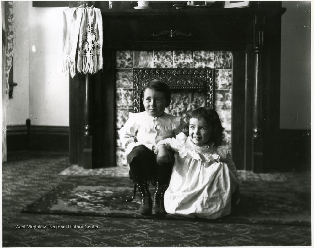 Boy and Girl Pose in front of the Fireplace, Morgantown, W. Va.