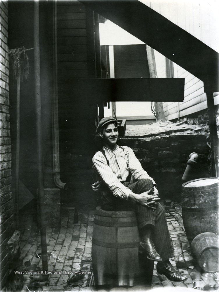 - Young Man Sitting on a Barrel, Morgantown, W. Va.