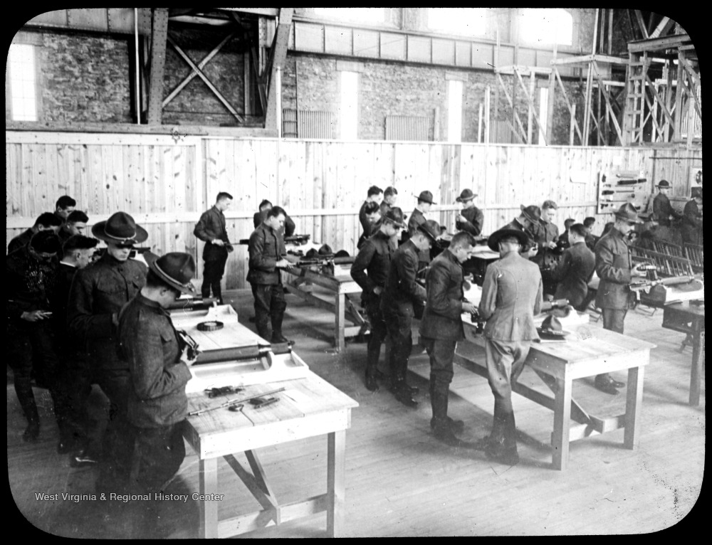 - World War I Lantern Slide Show. Slide No. 10 in group of originally numbered slides. Gunnery class. Frame is labelled with text saying 'Visual Bureau, University of Pittsburgh.' (negative no. 10-543 is inscribed on slide)