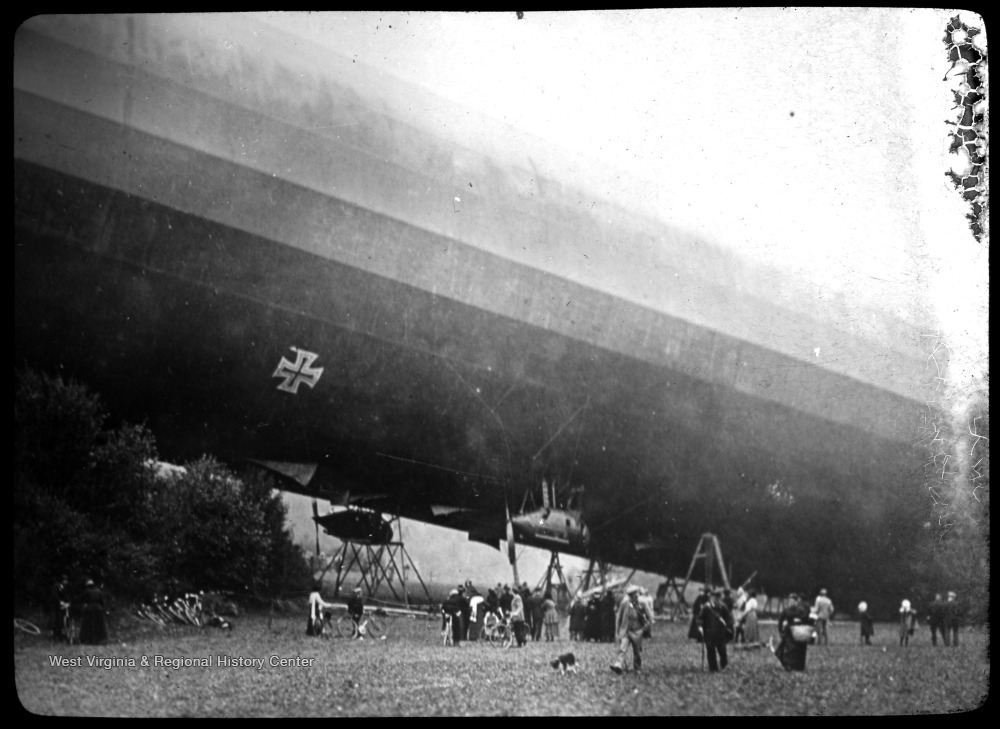 - World War I Lantern Slide Show. Slide No. 47 in group of originally numbered slides. Zeppelin airship. Frame is labelled with text saying 'Visual Bureau, University of Pittsburgh.' (negative no. 47-5777 is inscribed on slide)