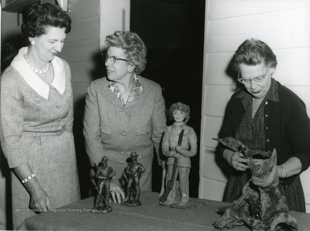 - Women present for this Sundale Membership Coffee Meeting are 'Mrs. Harry Muffly, and Mrs. J.O. Knapp', third woman unidentified. Women stand looking at statues.