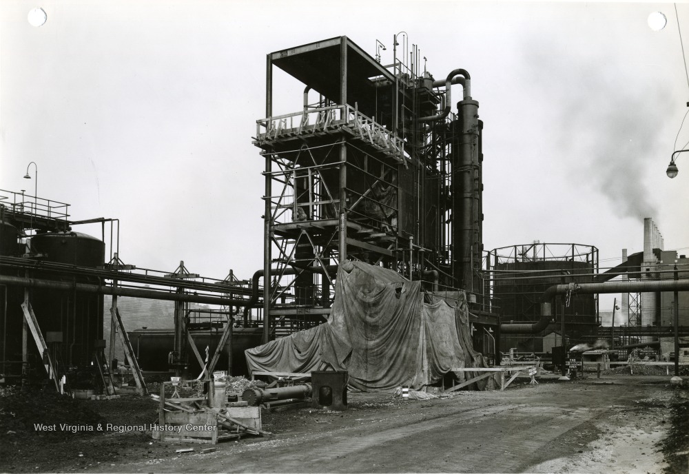 - 'United States Engineer Office. Corps of Engineers United States Army. Pittsburgh, Pennsylvania. Morgantown Ordnance Works- Morgantown, West Virginia. Addition to Methanol Still House- Looking Southeast. E. I. Du Pont de Nemours and Company- Contract W Ord- 490- Contract Date 11-28-40. Military Funds. July 12, 1943. No. 21008.'