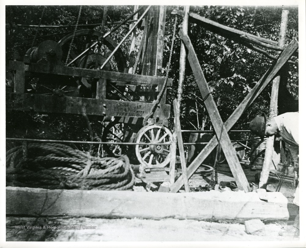 - A gentleman is working with an early oil rig in Volcano, West Virginia.