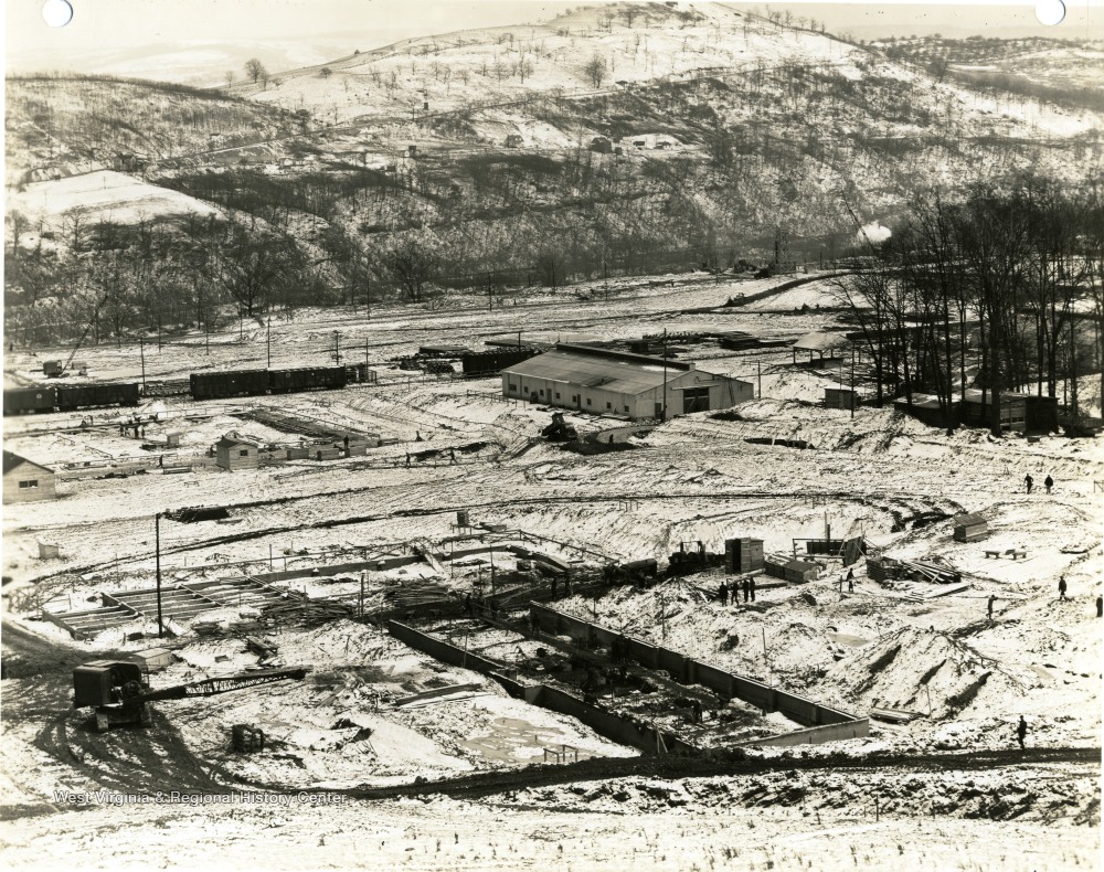 - 'Morgantown Ordnance Works, Morgantown, W. Va. Photograph Number 112. March 17. 1941, 3:00 P.M. Taken from tower number 1. Looking Southeast in maintenance shops and stores and construction pipe shop in background. Service building and main office in foreground.'