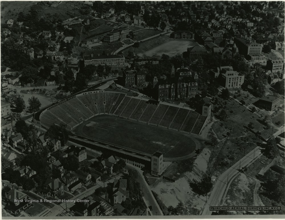 - Aerial View of Mountaineer Field and Surrounding Buildings, West Virginia University