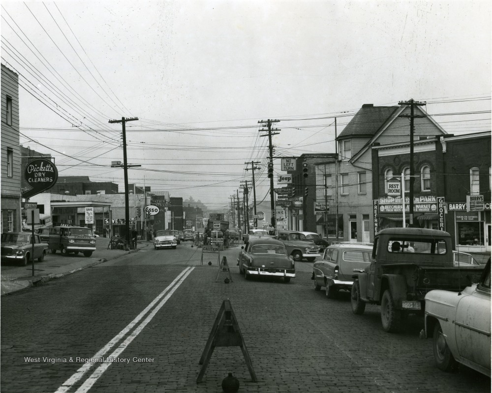 Road Work and Traffic on University Avenue, Morgantown, W. Va.