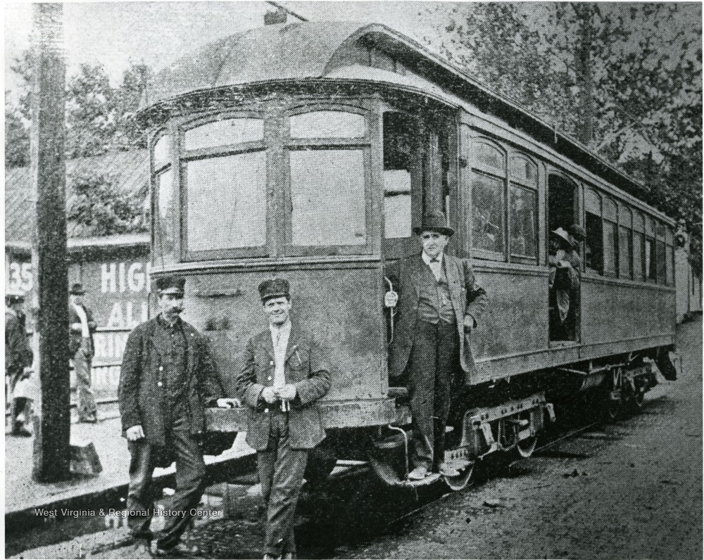 - Morgantown and Dunkard Valley Streetcar at the corner of Pleasant Street and University Avenue, ready to run to Cassville, men unidentified. Copied from Page 20 Morgantown Post Chroncile, Industrial Supplement, January 16, 1913.