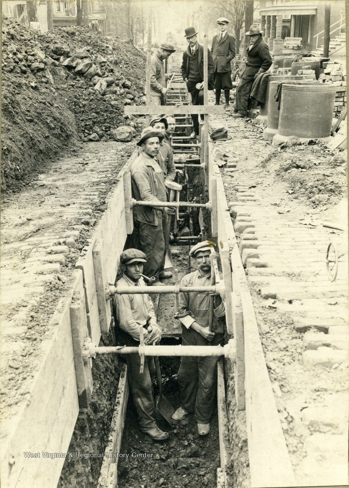 - Construction workers--West Virginia--Morgantown., Cities--Morgantown--Gibson Collection--Business and Industry., Trenches--West Virginia--Morgantown.