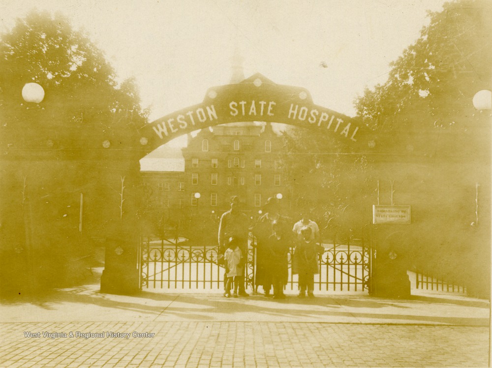 - Visitors in front of Weston State Hospital Gate, Lewis County, W. Va.