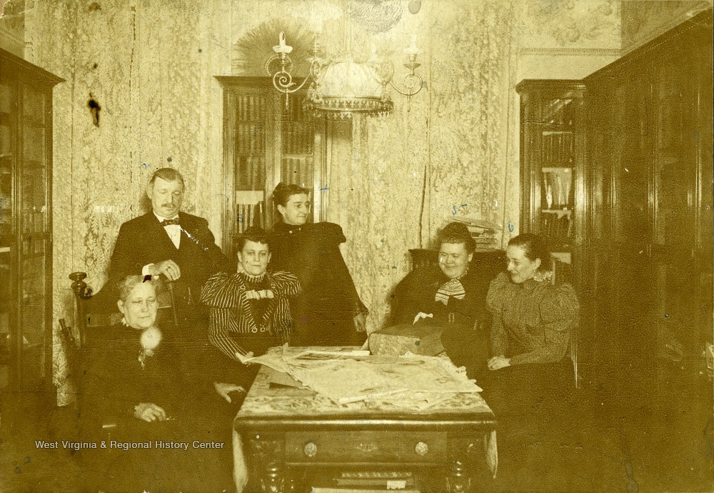 - Taken in the living room of Mr. and Mrs. David Street, Park and Madison St. Baltimore, Md. probably in the late 1890's. From left to right: Isabella T. McCullough, Mr. Charles Hatter, Jane McCullough Spence, Mrs. Hatter, Mrs. Lusselfaugh, and Sadie Street.'