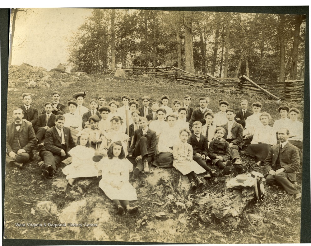 - A group portrait of Professor Lacey's High School, Rocky Point Academy, at Sinks Grove, Monroe County, West Virginia. 'Identification by Carlos Parker son of Anna Steele Parker, 8/1979 (nearly blind) at Roanoke. Taken to him by Va. Steele. Prof. Lacey at far right, in front. Man in suit, center right with coat buttoned to neck is Robert Morton Steele. Eva B. Steele on his left. Steele's born in Steele's Valley (Steelesburg) Tazewell County, Va. near Cedar Bluff and moved to Monroe County. First row, person with hat is Ollie Steele. Boy and man front left is Ray P. Beckett and Mr. C. A. Keadle - teacher and superintendent of schools Monroe County. Organized the corn clubs that were forerunner of 4H Clubs. Suggested at Farmer's Institute, Monroe County 1890-1900s.'