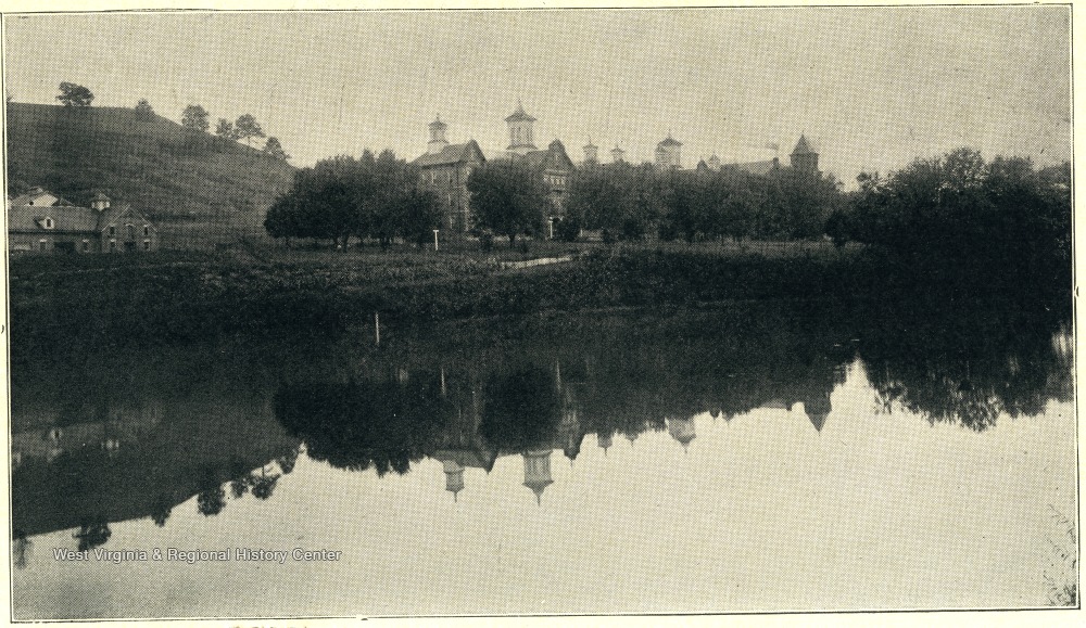 - A view of Spencer State Hospital across the lake. W. D. McClung, M. D., Superintendent. This institution is located at Spencer, Roane County, and is reached by the Baltimore and Ohio Railroad. Number of Patients June 30, 1922 was 615.